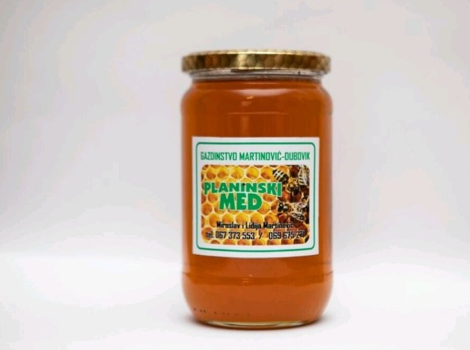 Naš planinski med potiče iz čiste ekološke sredine sa 930.mnv. I Sačinjen je od različitih trava od kojih su najzastupljeni pelim, vrijes, majčina dušica.