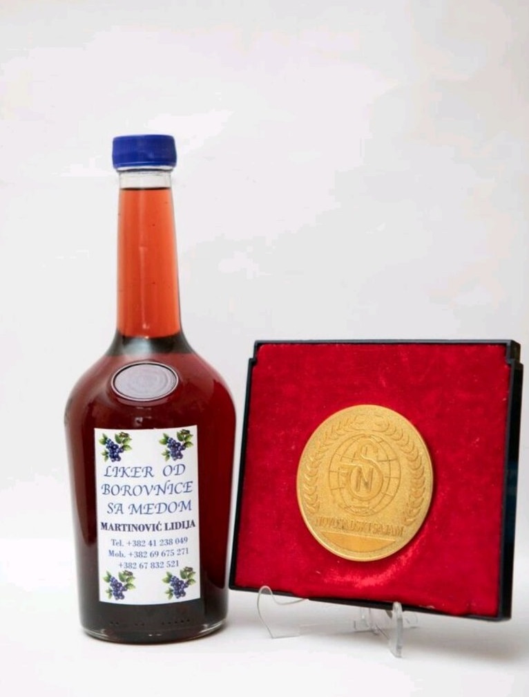 Liker od borovnice za medom dobitnik velike zlatne medalje na novosackom sajmu 2009g.